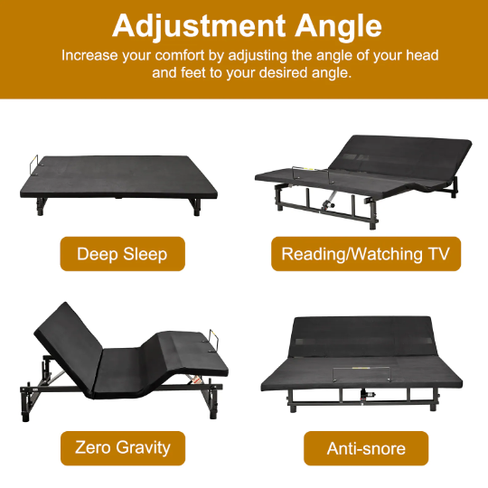 Adjustable Head and Foot Positions: Customize your comfort with the ability to separate and adjust the head and foot positions. The head can be adjusted from 0 to 61 degrees, and the foot can be adjusted from 0 to 37 degrees, allowing you to find the perfect sleeping or lounging position.